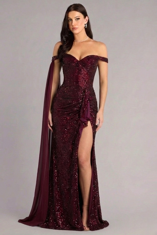 Scarlett Off-Shoulder Gown – Burgundy Wine